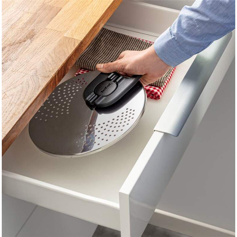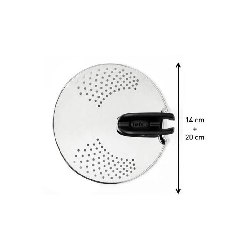 Uniwersalna pokrywka Tefal z otworami do naczyń Ingenio o średnicy 14, 16, 18 i 20 cm. Wykonane z wysokiej jakości stali nierdzewnej. Można go wygodnie umieścić na brzegu naczynia.